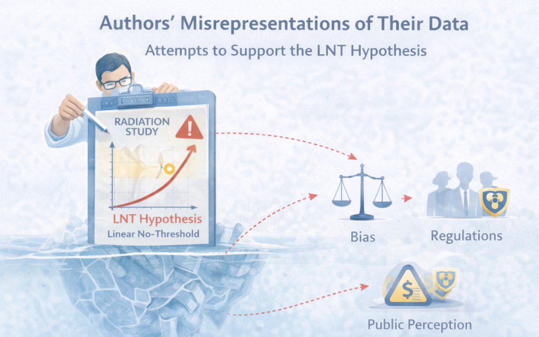 The article analyzes instances where authors of scientific studies are alleged to have misinterpreted or misrepresented their own data in support of the Linear No-Threshold (LNT) hypothesis for radiation risk.