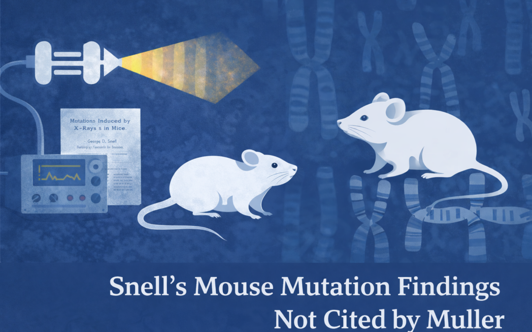 • George D. Snell, working as a postdoctoral researcher under Hermann J. Muller, conducted a large-scale mouse mutation study to test whether X-rays induced heritable mutations comparable to Muller’s earlier fruit-fly experiments.